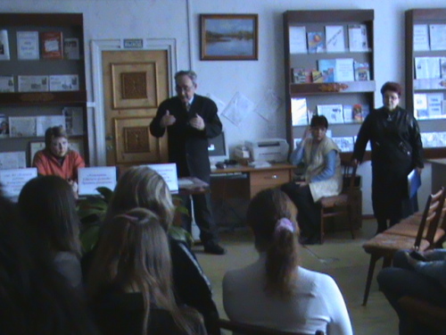 Члены женского клуба любителей чтения 'Рябинушка' оказались гостеприимными хозяевами и заядлыми театралами. Они интересовались творческими планами артистов, показали альбом с фотографиями, запечатлившими моменты прошлогодних встреч, театральную афишу с автографами артистов. Заведующая БИЦ Светлана Субботенко оформила стенд с публикациями в городских средствах массовой информации и интернете, среди которых были статьи Алексея Сергеева о театре в газете 'Поле зрения' и Татьяны Цуркан о ведущей актрисе театра Елизавете Добринской. С утверждением в этих статьях, что театр делают люди, трудно не согласиться. Заинтересовал гостей и фрагмент из видеофильма о творческой встрече 2008 года 'Без грима и купюр'. Школьники в нескольких номерах журнала 'Росток' делились о своих впечатлениях об увиденных спектаклях и актёрской профессии.