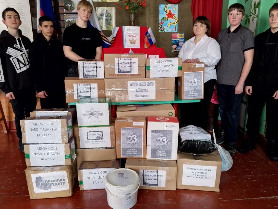 В пункте сбора гуманитарной помощи для участников СВО клуба "Молодежный" всю неделю кипела работа. Поздравить наших воинов с Днём защитника Отечества спешили и стар, и млад. Преподаватели, учащиеся и родители школы N50 собирали посылки солдатам, писали душевные письма на фронт. Пенсионеры вязали носки и пекли пирожки. Сотрудники клуба закупали одноразовую посуду, влажные салфетки, супы быстрого приготовления, чай и сладости.