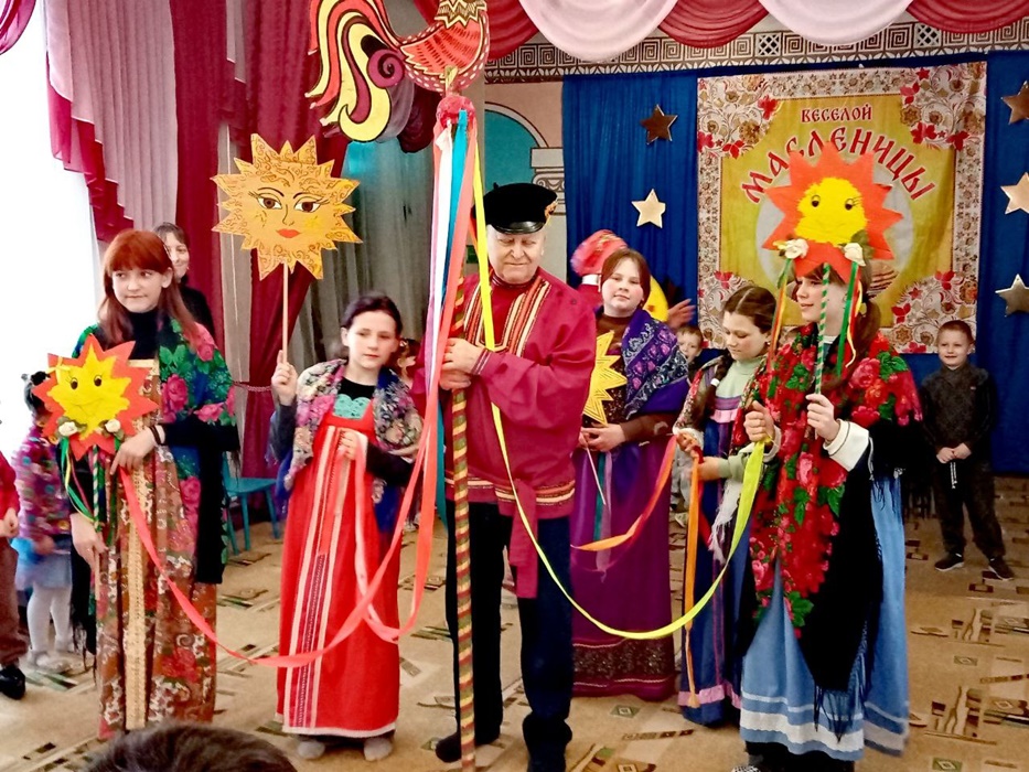 Ребята с ведущей, Масленицей и Матушкой-Весной водили хороводы вокруг праздничной карусели. Участники фольклорного коллектива "Калинка" вместе с руководителем Зоей Александровной Левакиной исполняли весёлые народные песни. Были и традиционные русские забавы - перетягивание каната, состязание богатырей.