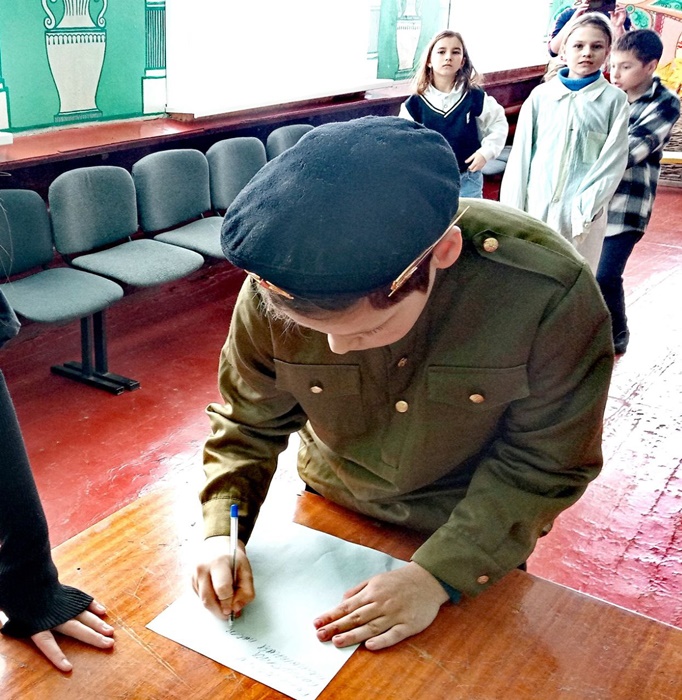 А до этого в фойе клуба поздравляли с наступающим Днём защитников Отечества мальчишек, будущих воинов, а пока - учеников младших классов школы N50. Они не только слушали слова поздравлений, но и активно участвовали в игровой программе, где проявили смекалку, ловкость и выносливость. Девочки с радостью помогали своим одноклассникам строиться в шеренги и "стрелять по танкам", преодолевать "минные поля" и перевязывать "раненных", а так же "варить борщ" и отплясывать танец "яблочко". Как говорится - сделал дело, гуляй смело! Дети ушли на праздничные выходные с хорошим настроением и массой положительных эмоций.