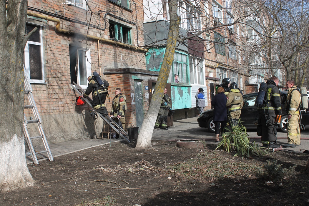 Пожар случился в квартире первого этажа пятиэтажного дома по Достоевского, 70а. На месте происшествия работают пять пожарных машин, тут же находится автомобиль газовой службы и "скорая помощь". Люди рассказывают, будто бы из горящей квартиры был эвакуирован мужчина, который при этом оказывал сопротивление.